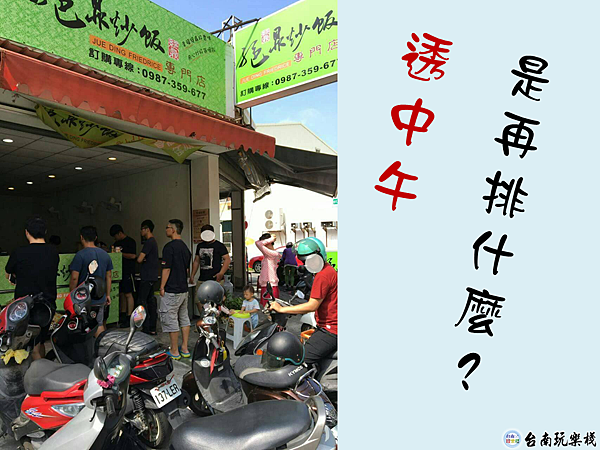 常常市區跑透透的得我常常報導一些開幕的店,日前在崑山國小看到即將開幕的金太郎蛋包飯,也在粉絲頁報導了此間蛋包飯開幕與活動,但有一個畫面總讓我很在意,就是再不遠處有一間綠色招牌炒飯店,經過幾回都會看到滿滿的排隊人潮,一點都不誇張~已經看到好幾回了就是人很多一直排隊一直排隊,是沒吃過炒飯嗎 ? (按耐不住的我下車了)